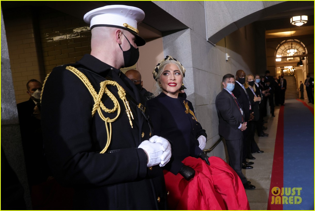 As gaga arrived to perform the national anthem at joe biden's inauguration on 20 january, marine captain evan campbell walked her down the steps at the west. Lady gaga wears a custom schiaparelli haute couture dress, designed by daniel roseberry, to perform the us national anthem at the inauguration ceremony for joe biden and kamala harris. Lady gaga and jennifer lopez have performed at the inauguration of president joe biden. Scroll down to see the best twitter reactions to gaga's iconic look.